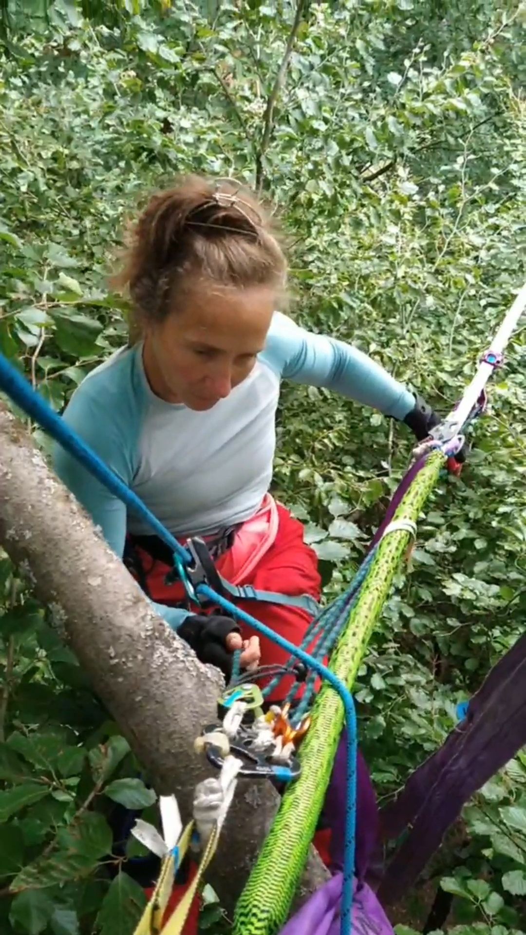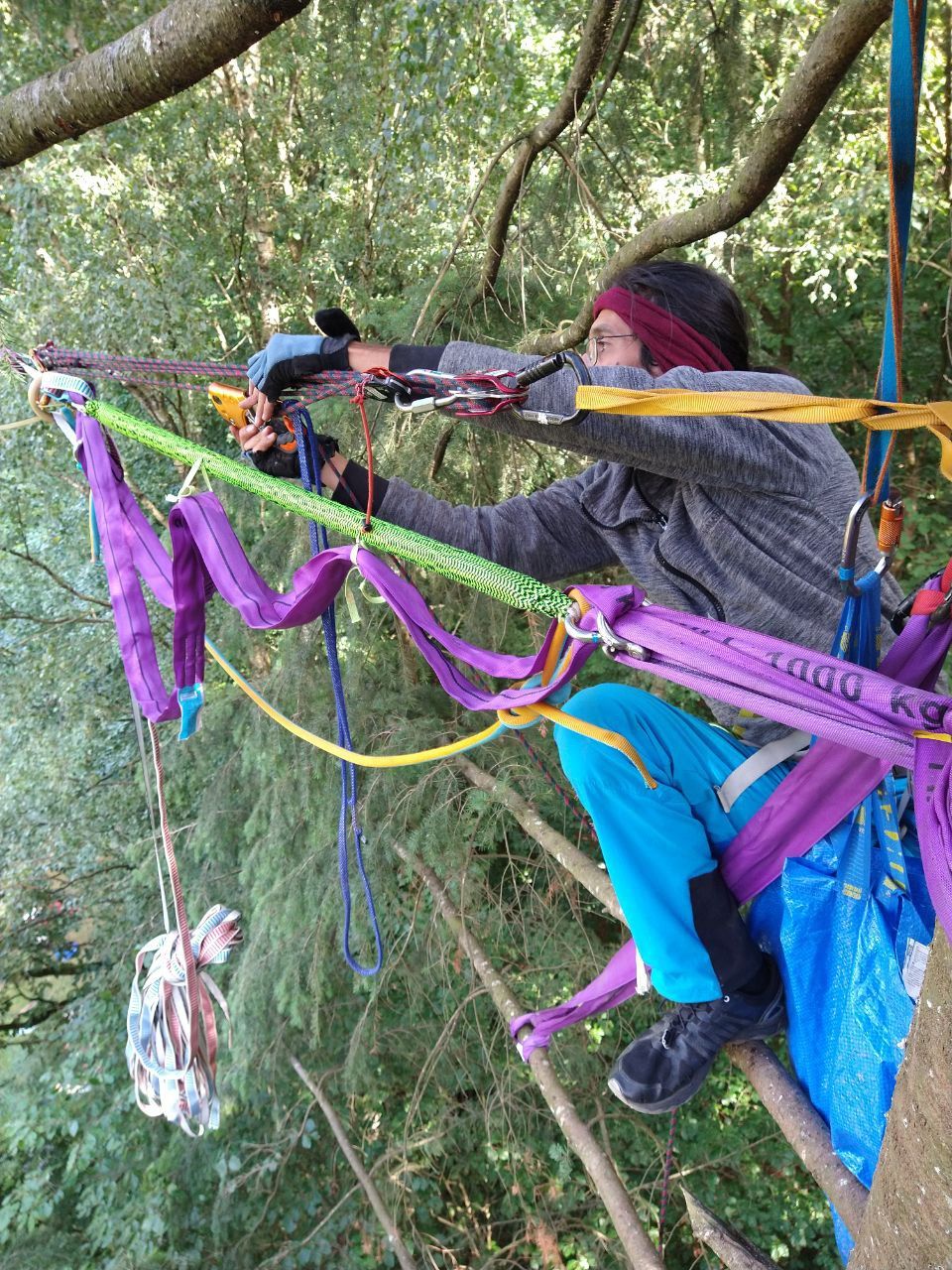 Der anschließende Aufbau der neuen Permanenten war ein Projekt, das sich über mehrere Tage erstreckte. Die beiden Lines messen 50 und 70 Meter Länge und verlaufen in beeindruckenden 18 bis 20 Metern Höhe zwischen den Bäumen des Stadtwalds. Hier entstand nicht nur neue Infrastruktur, sondern ein Ort für Progression, Training und gemeinsame Erlebnisse in der Höhe.